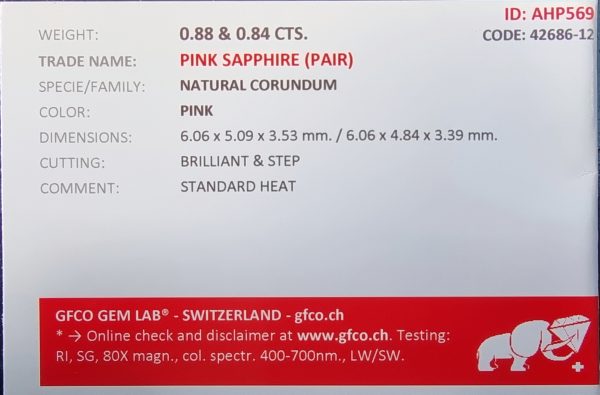 Discover the perfect balance of color and clarity with this exquisite pair of Pink Sapphires. Identified as Ref: Sapp 160, these gemstones have been hand-selected for their matching profiles, making them an impeccable choice for high-jewelry commissions.