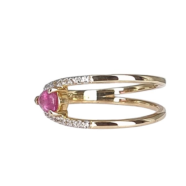 This elegant ring combines the warm glow of yellow gold with the soft, romantic hues of pink tourmaline and shimmering white topaz. Perfectly balanced for both daily elegance and special occasions, it is a sophisticated addition to any jewelry collection.