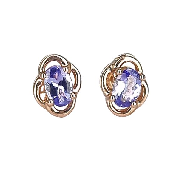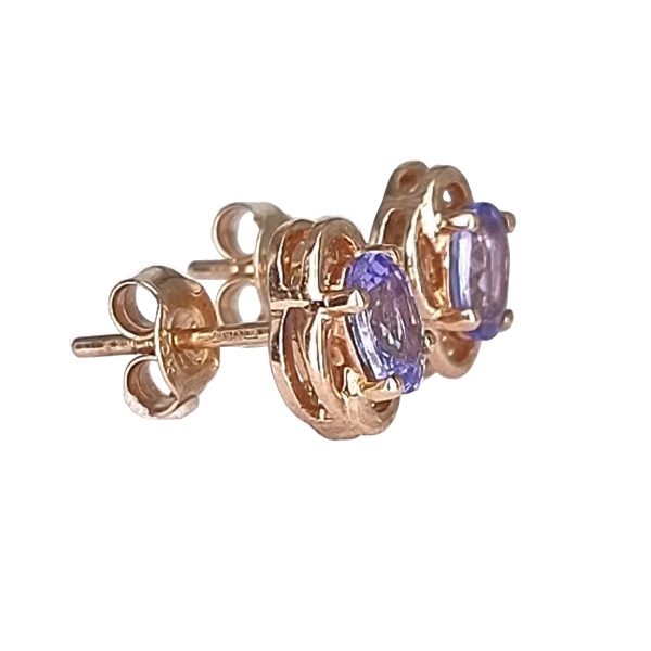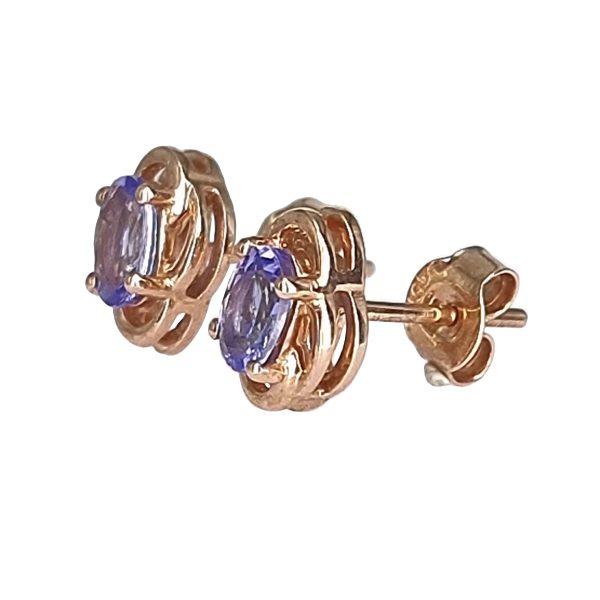 Natural Tanzanite Rose gold earrings set as a simple prong setting.