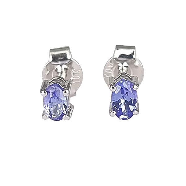 These beautiful oval-shaped natural Tanzanite stud earrings are set in 10K yellow gold. Each earring features a 6x4mm Tanzanite gemstone and has a push back locking system for easy wear.